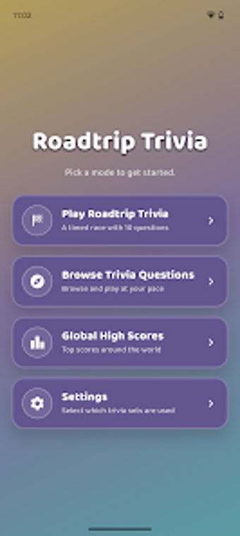 Spelets design är enkel och ren, vilket gör det lätt att läsa och navigera. Med svepfunktioner kan användarna enkelt bläddra mellan frågor och det fungerar även offline, vilket gör det idealiskt för resor och snabba spelsessioner. Roadtrip Trivia är inte bara roligt utan också lärorikt, vilket gör det perfekt för klassrum och familjesammankomster. Det är gratis att spela och stöds av små bannerannonser utan att vara påträngande.